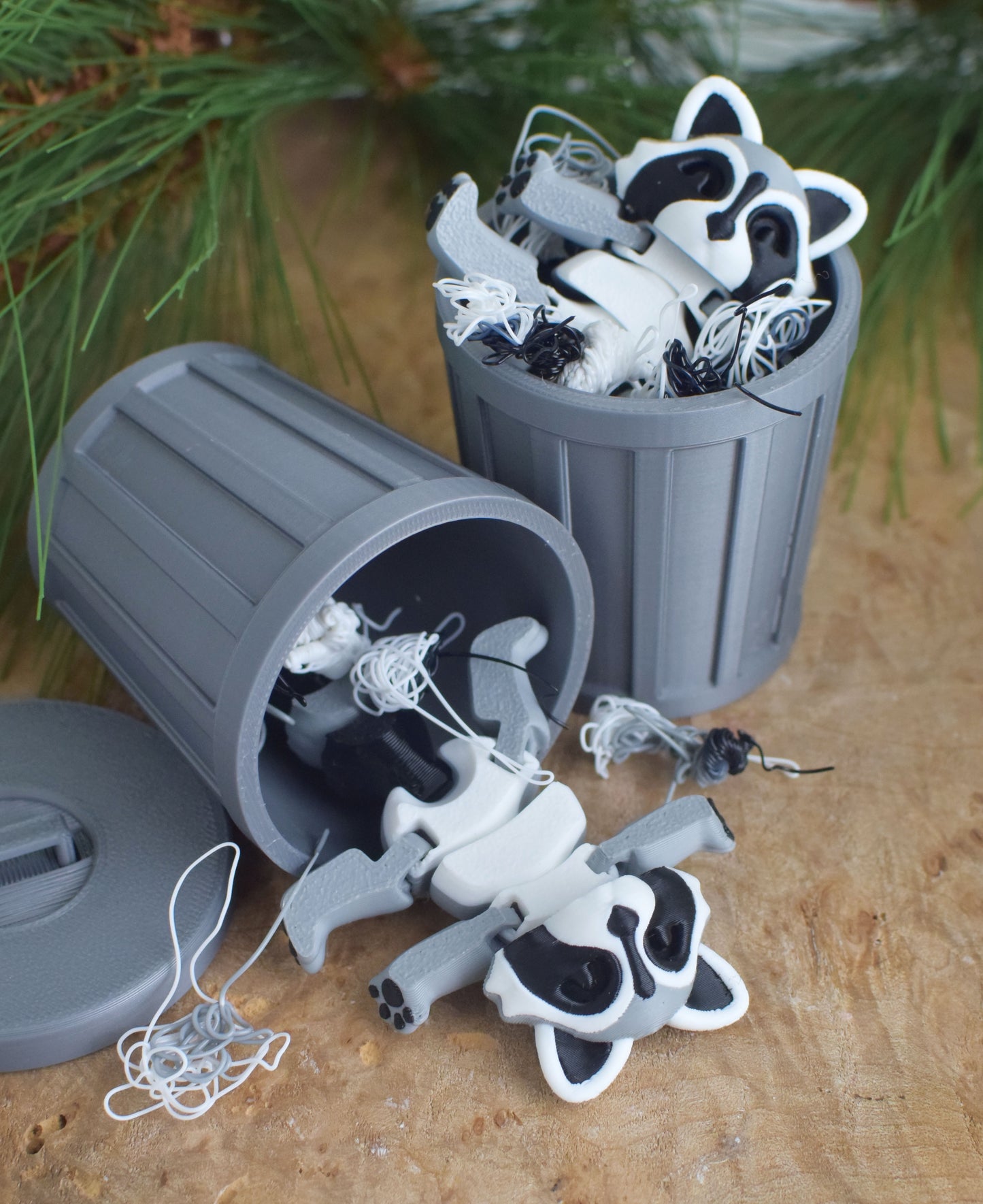 Get ready to add some quirky fun to your life with our 3-D Printed racoon! This adorable trash panda comes with its very own trash can.