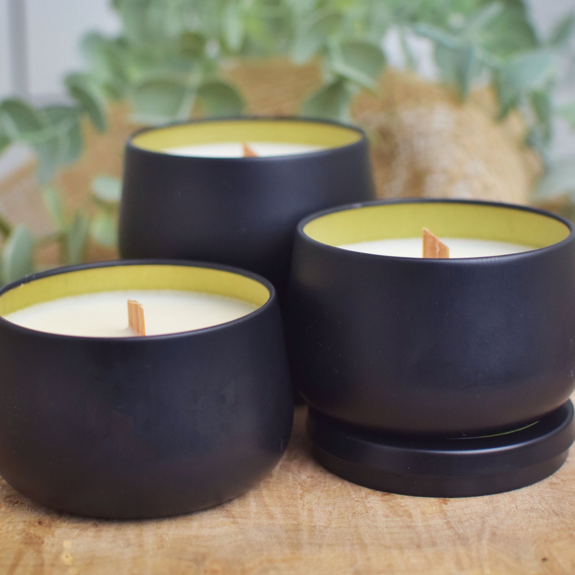 These 4oz Black Tin Candles are perfect for creating a cozy, inviting atmosphere in any smaller room. Their unique crackling wood wick will fill your room with a delightful scent and beautiful crackle sound.