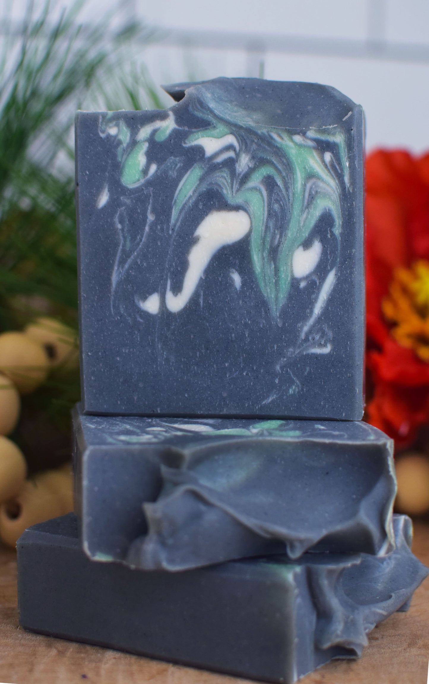 Ingredients: Olive oil, coconut oil, lard, shea butter, water, sodium hydroxide, castor oil, avocado oil, fragrance, kaolin clay, activated charcoal, black oxide, mica.